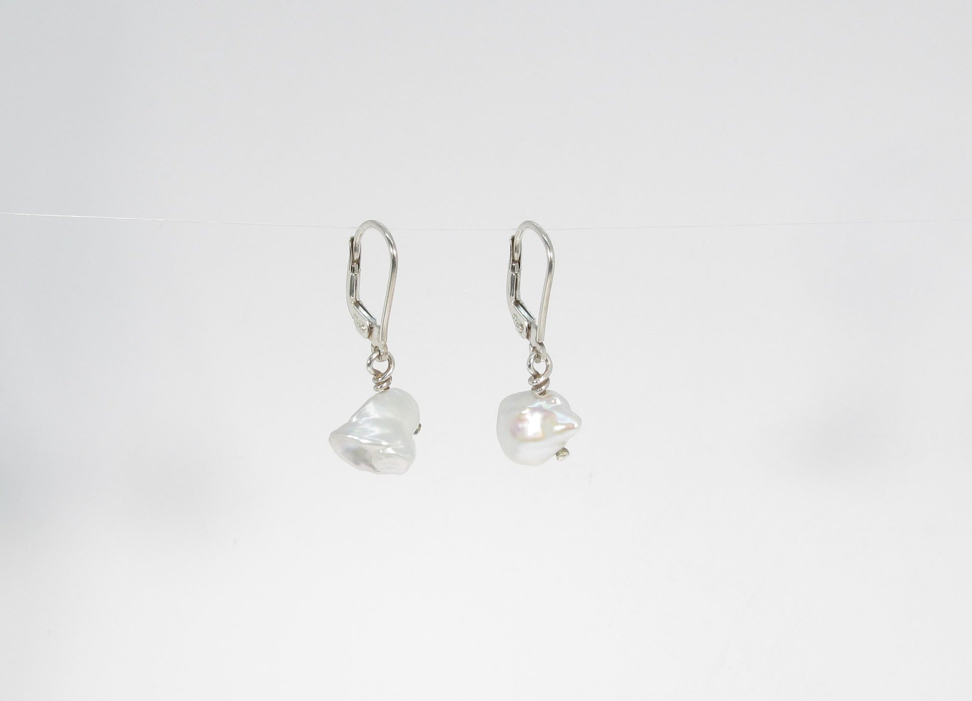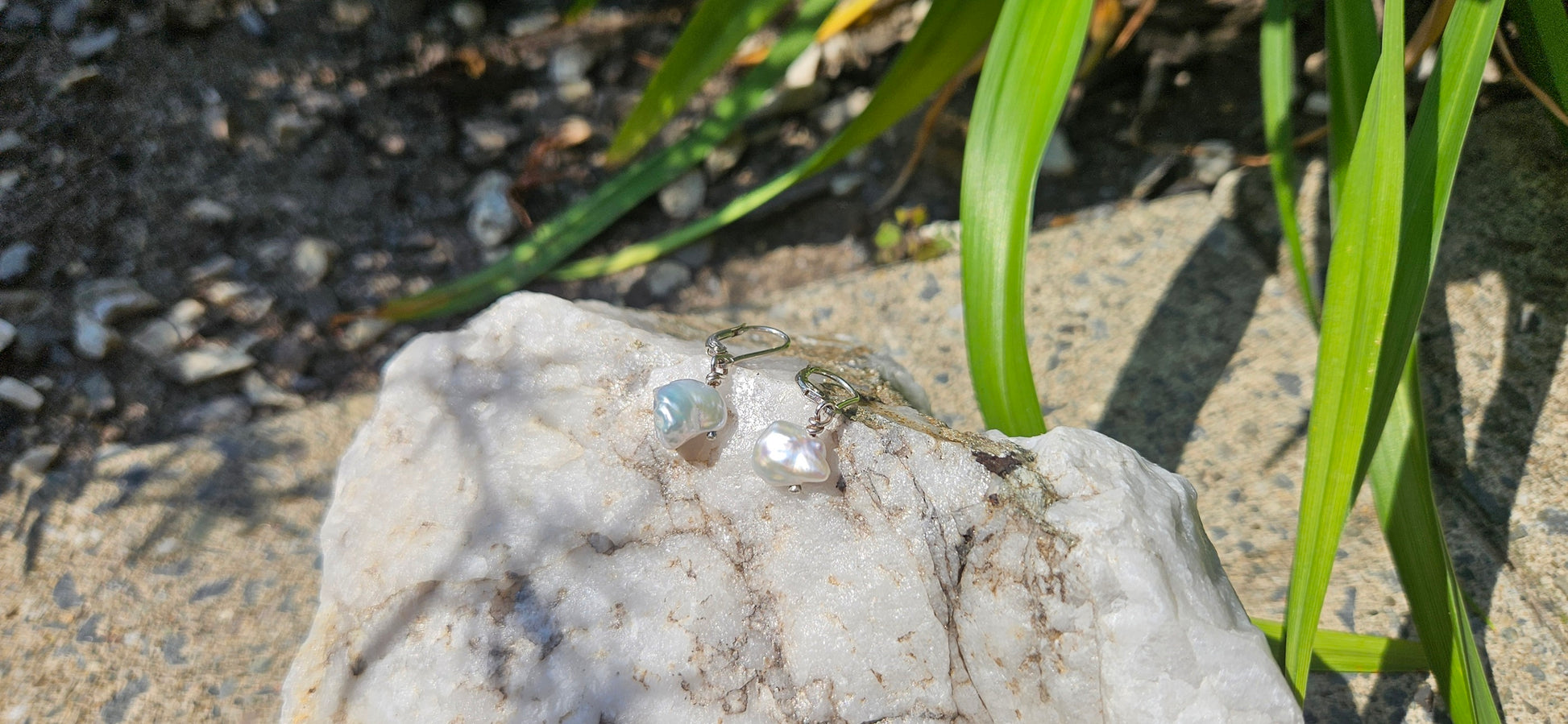 Boucles d’oreilles Perle Keshi Gris Grand en argent 925, tout fait main.