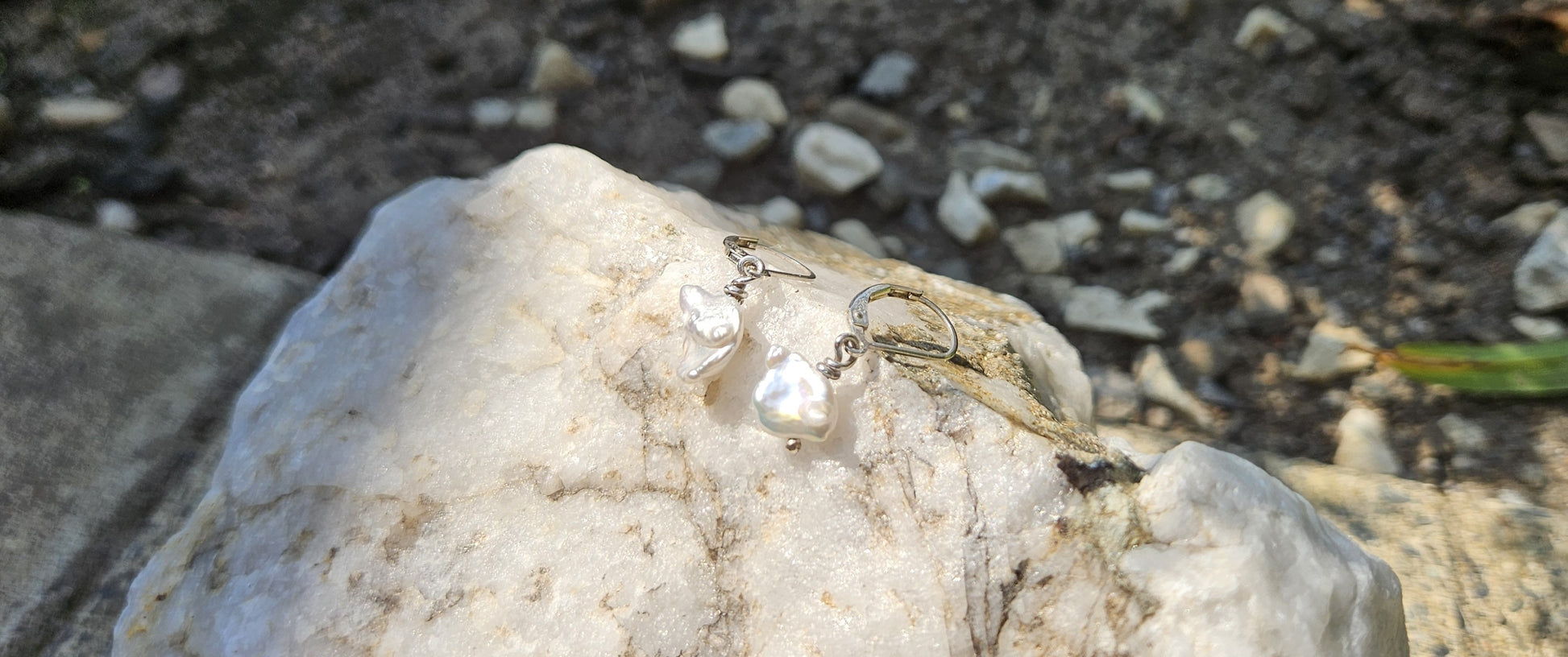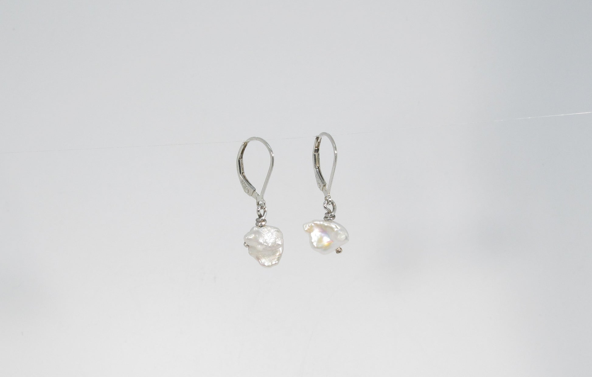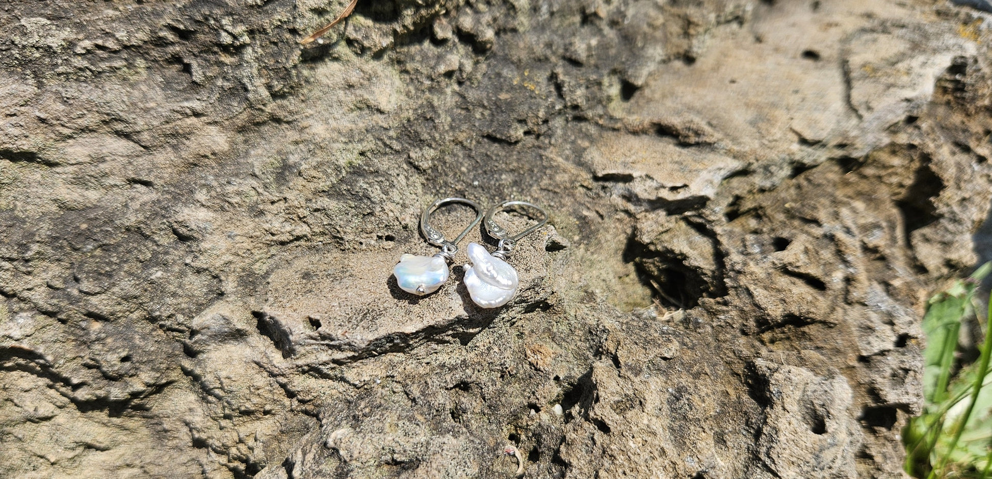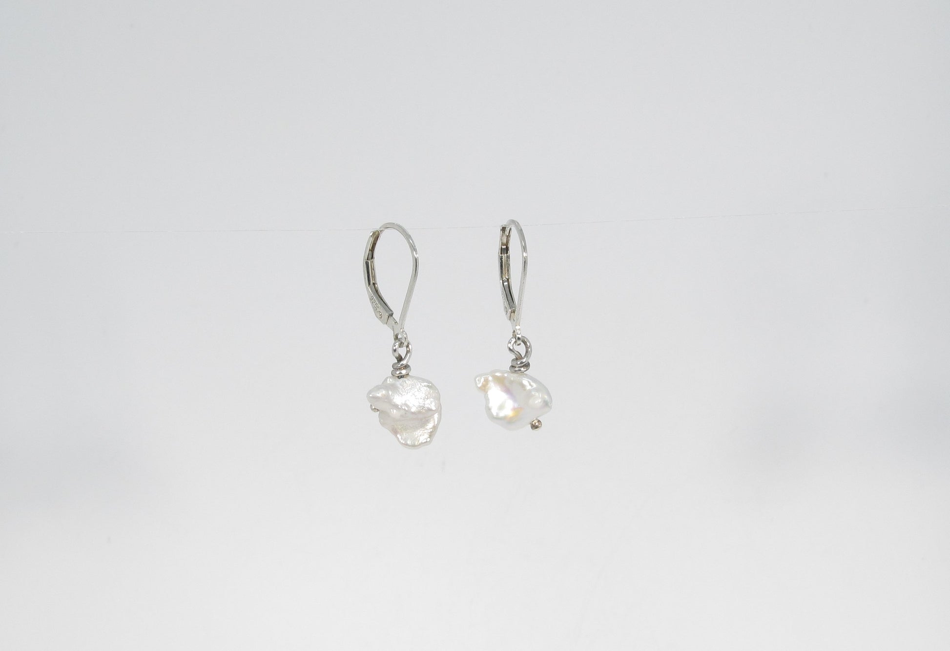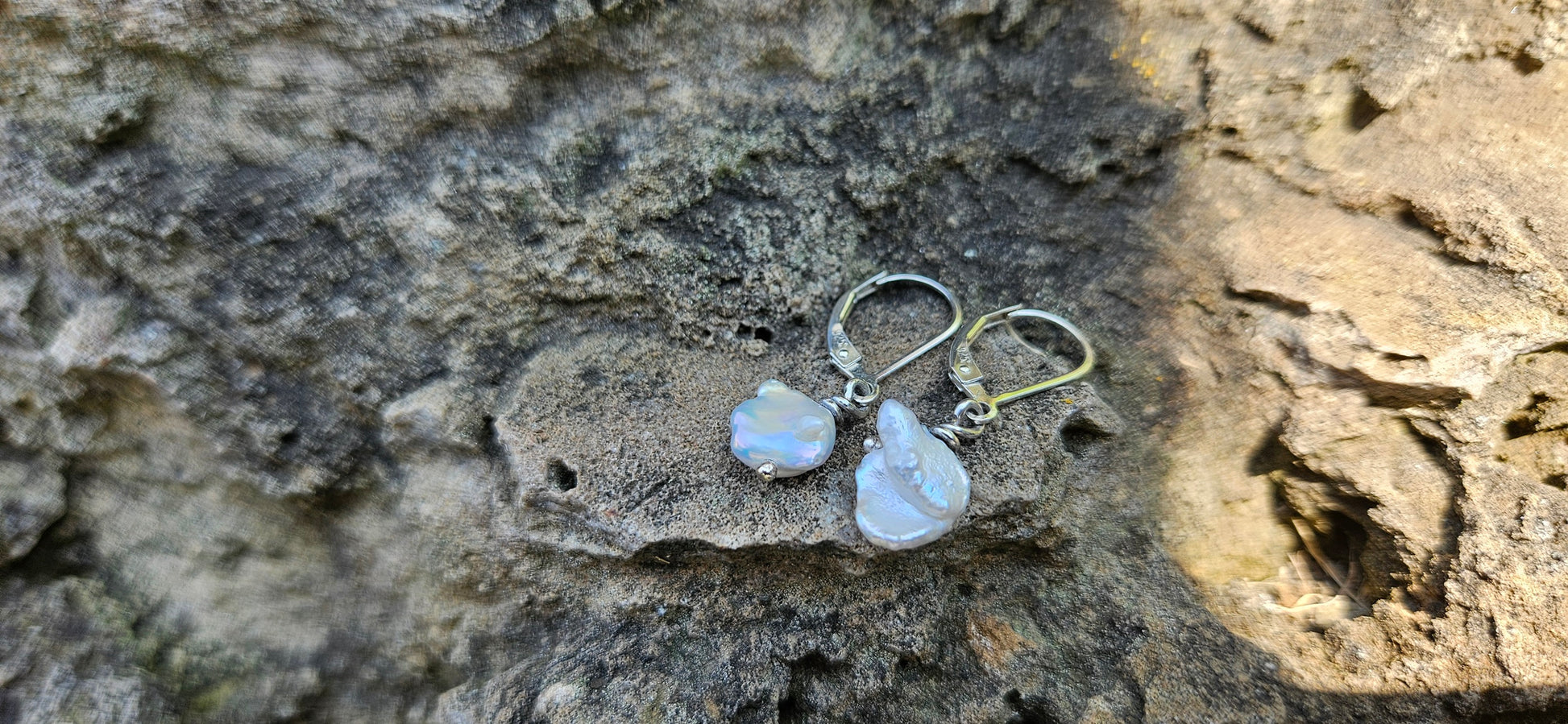 Boucles d'oreilles Perle Keshi Gris Moyen en argent 925, tout fait main.